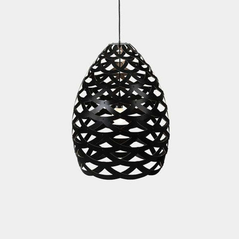 Tūī are the real characters of Aotearoa’s native bush. They hurtle through the bush with drumming wing-beats, miraculously avoiding branches whilst maintaining their cool charm. Their song is like no other: a series of clicks, gurgles and resonant, bell-like notes...some off our hearing scale! They have two dangling white wattles on their throats and around their shoulders is a necklace of interwoven rings which is the inspiration of our Tūī light. Half rings of bamboo are woven into a basket form that would sit perfectly over a dining table, kitchen counter or equally hanging in a stairwell or entrance void.