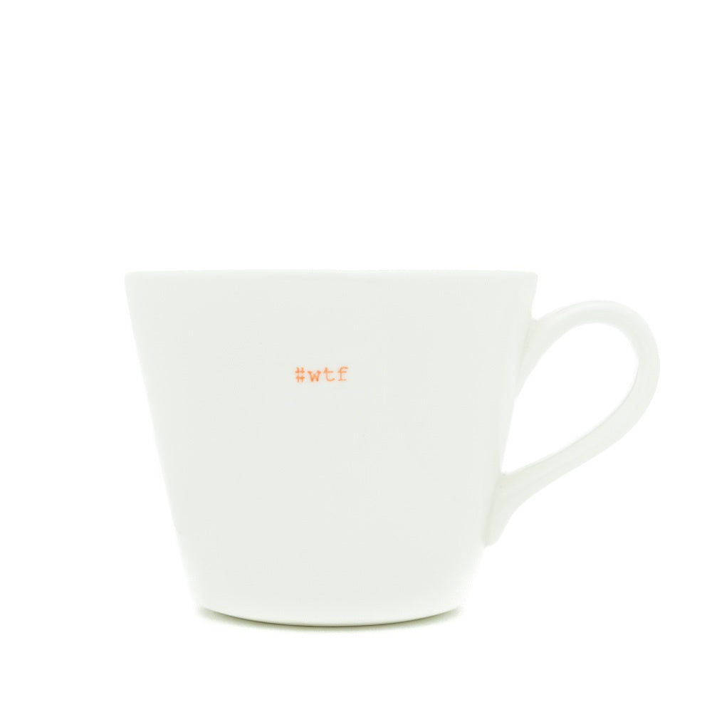 Hand stamped with ‘#wtf’ in orange typewriter font, this Keith Brymer Jones medium bucket mug makes a playful and witty gift for the ever-dramatic friend or colleague who’s always left thinking “what the f…?”. Crafted from white porcelain, it’s perfect for everyday coffee or tea with a dose of humour.