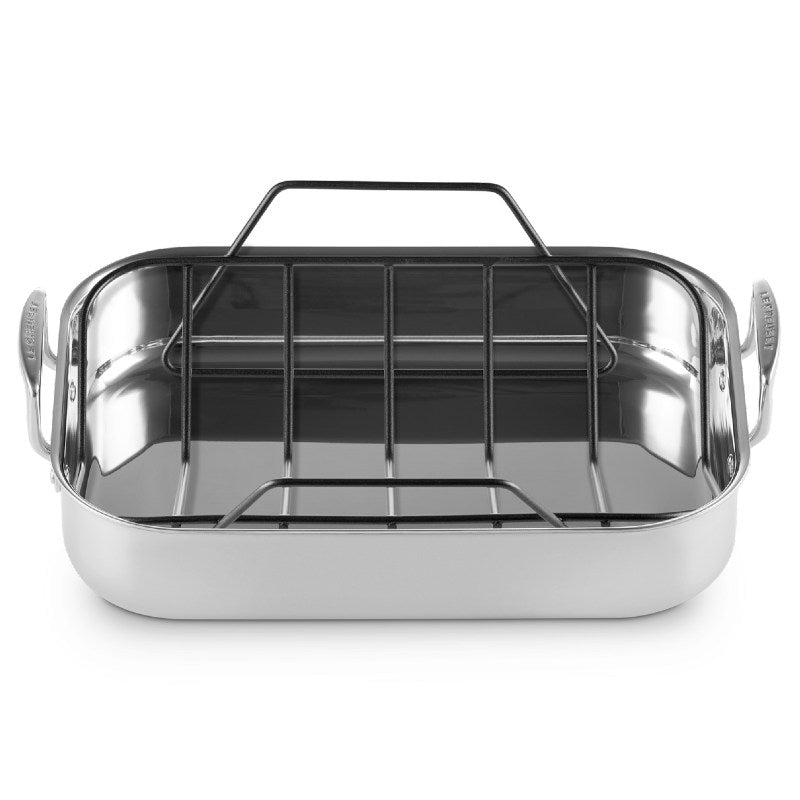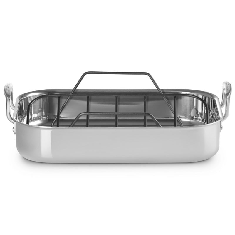 Stainless Steel Roaster With Roasting Rack 35cm is ideal for roasting meats, poultry, and vegetables, offering reliable performance and excellent cooking results. Made from durable 3 ply stainless steel, it provides even and gentle heat distribution across the entire pan, eliminating hot spots and ensuring food cooks thoroughly. The upright, space saving handles allow for a secure and comfortable grip, making the roaster easy to lift and maneuver. The included non-stick roasting rack excess oils and juices drip into the roaster, helping achieve healthier results while also collecting flavourful drippings that can be used for gravies or sauces if desired. Designed for both everyday use and special occasions, this roaster combines practicality, durability, and performance in one versatile kitchen essential.