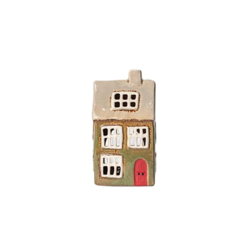 Festive Alsace Tea Light Christmas Green captures the charm of a traditional holiday village, featuring a hand painted tealight house with intricate detailing that glows beautifully as part of a magical Christmas display.