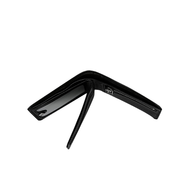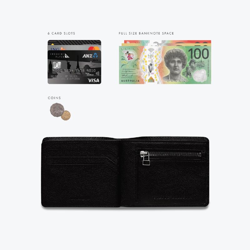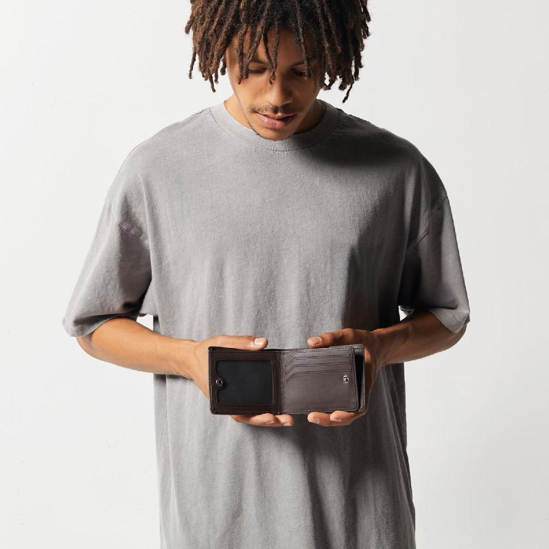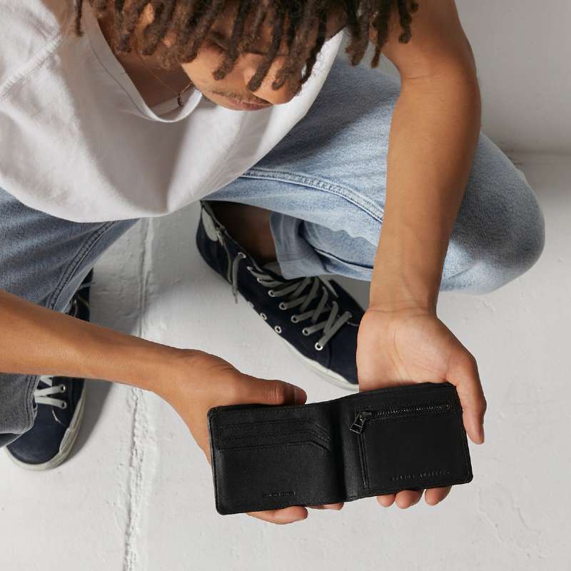 Streamlined Leonard Mens Wallet delivers easy organisation without the pocket bulk, offering quick access to cash, coins, and your go to cards the moment you open it. A hidden compartment beneath the snap closure stores extra cards and ID, keeping everything neatly separated while still feeling effortlessly compact.