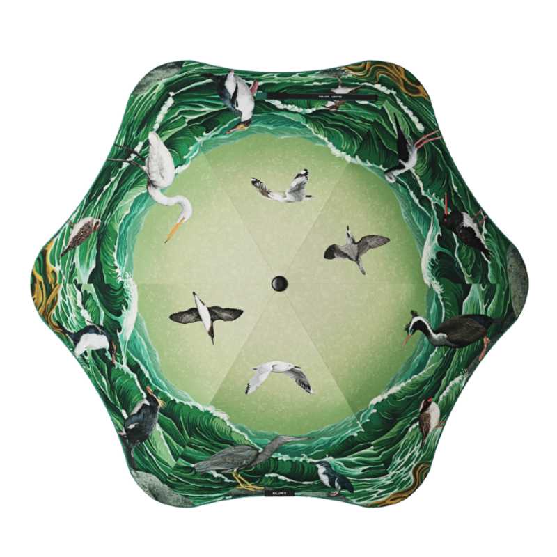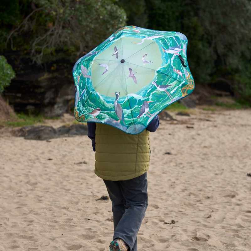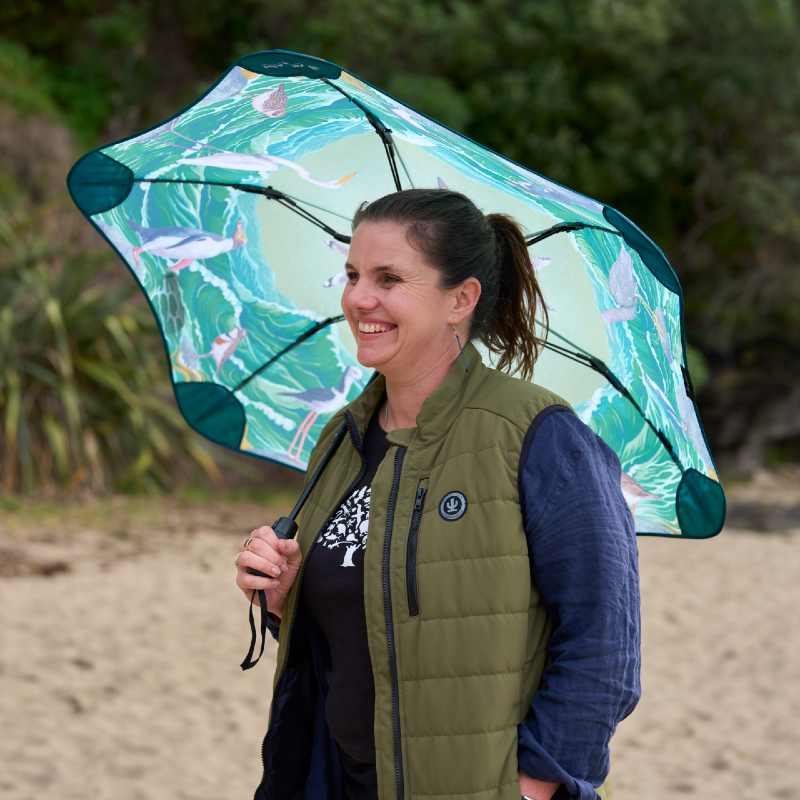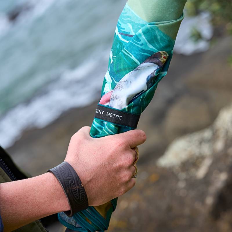 Metro Umbrella Forest And Bird 2025 showcases Aotearoa’s coastal wildlife through the artistry of renowned Kiwi artist Tanya Wolfkamp. Inspired by the sea and shorelines of her Waiheke Island home, she layered teal waves, rocky textures, and soft watercolour washes to evoke seabirds gliding over the ocean. The canopy features 16 native sea and shore birds, including endangered species such as the Hoiho (Yellow-eyed penguin), Kōtuku (White heron), Tarāpuka (Black-billed gull), and Tūturuatu (Shore plover), as well as other at risk birds like the reef heron, Kaikōura tītī, variable oystercatcher, Cook’s petrel, and several penguins and dotterels. This limited edition Metro umbrella, the third Blunt x Forest & Bird collaboration, unites art and conservation in tribute to New Zealand’s remarkable marine birdlife. Metro Umbrella Forest And Bird 2025 has a compact and collapsible design, making convenient for those who live life in the fast lane and refuse to let the weather hold them back. It is perfect for unpredictable days when you're not sure about the weather ahead, easily fitting into your handbag, tote, or backpack to ensure you're prepared for any sudden downpour. With an auto open button, the canopy instantly provides cover at your fingertips, while the umbrella’s unique 360° spinning technology allows it to handle knocks gracefully when navigating narrow spaces. Once you're done, collapse the canopy and slip it back into its carry sleeve. Sized perfectly for one person, it provides reliable protection and peace of mind, making it a trusted sidekick on all your adventures.