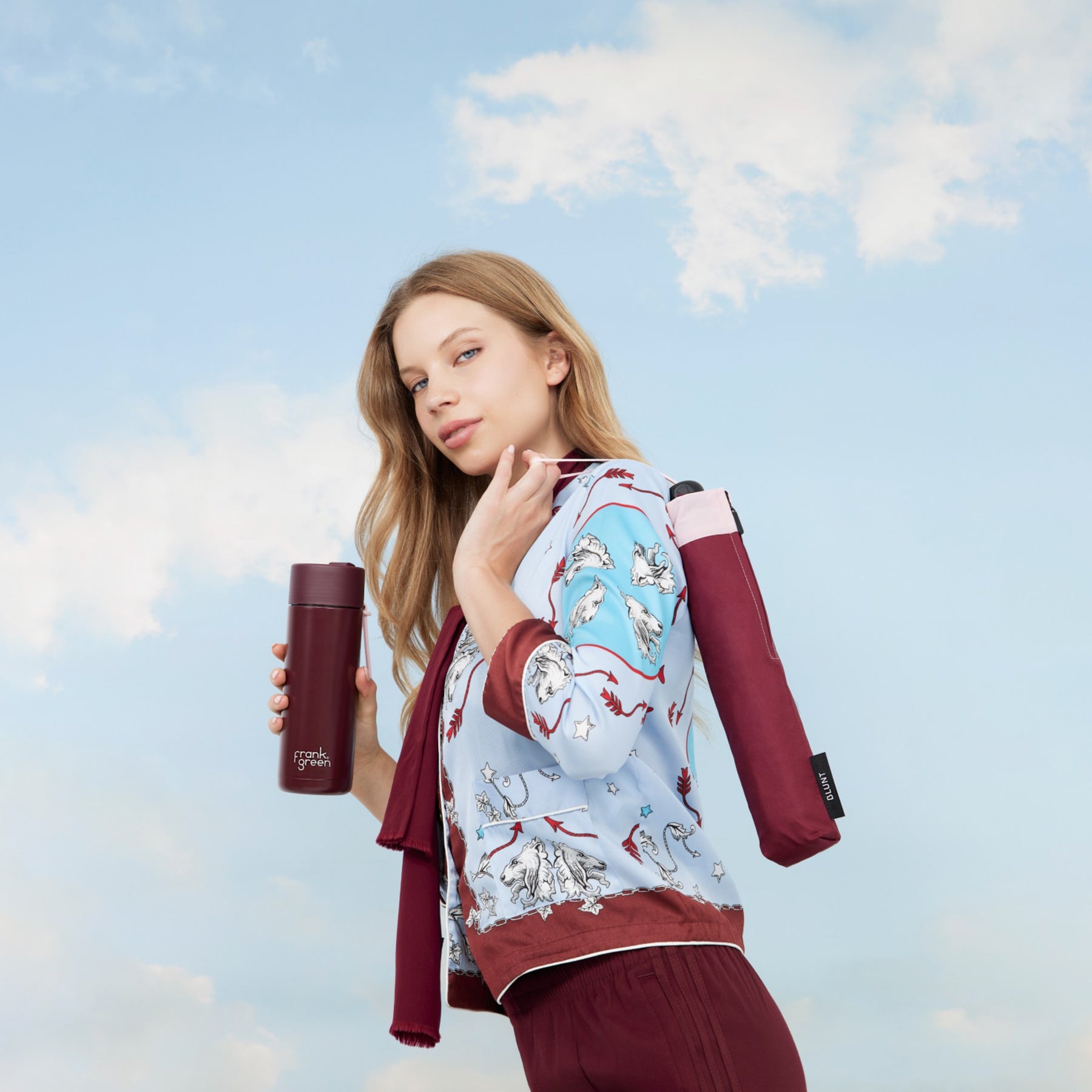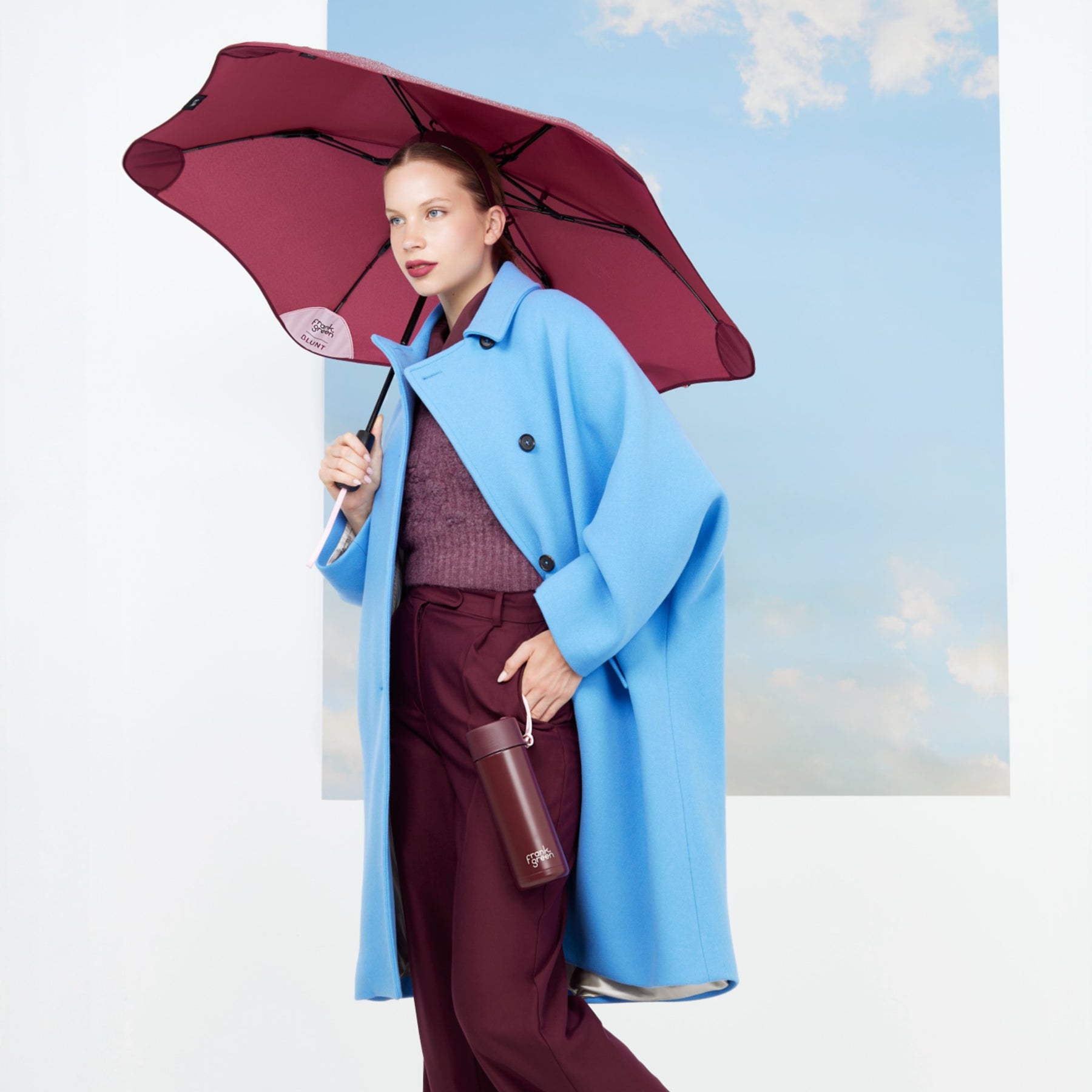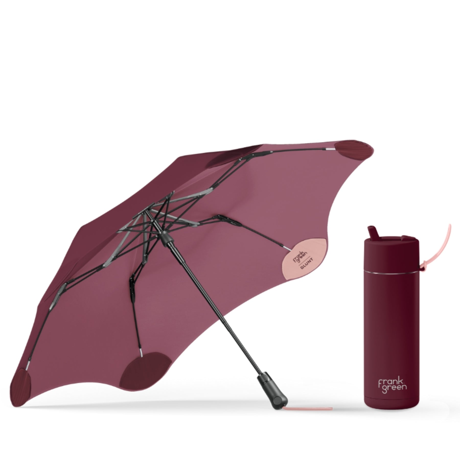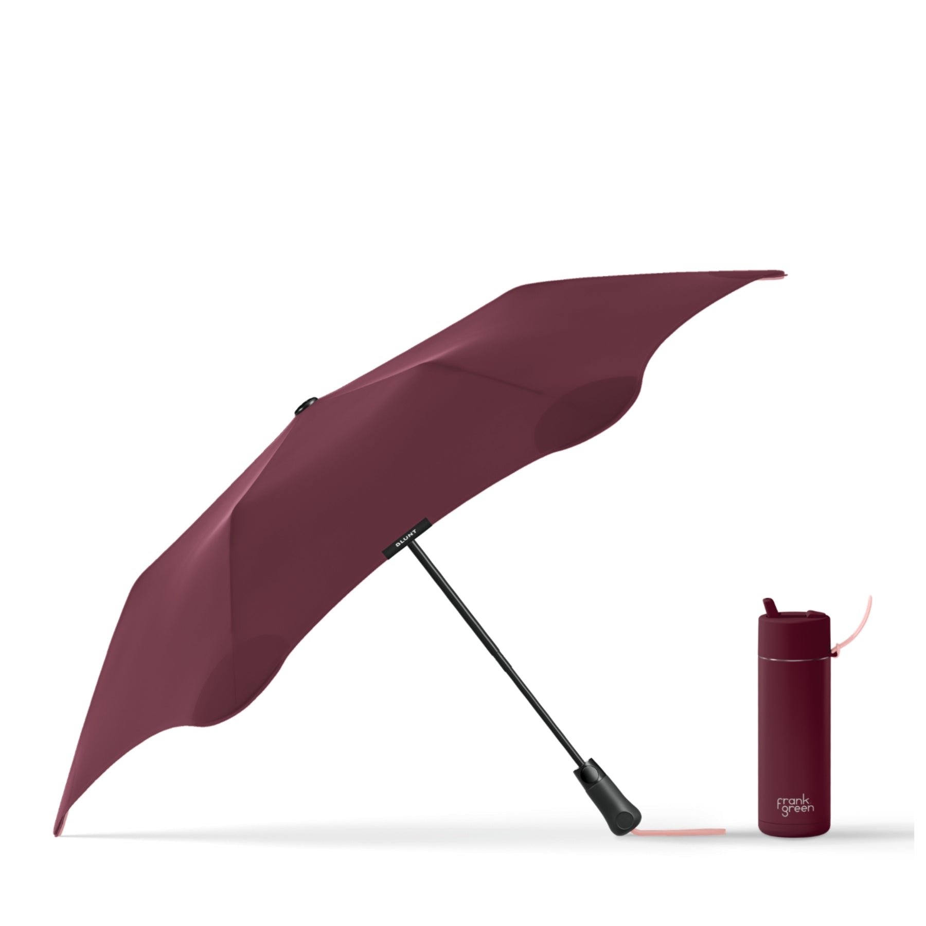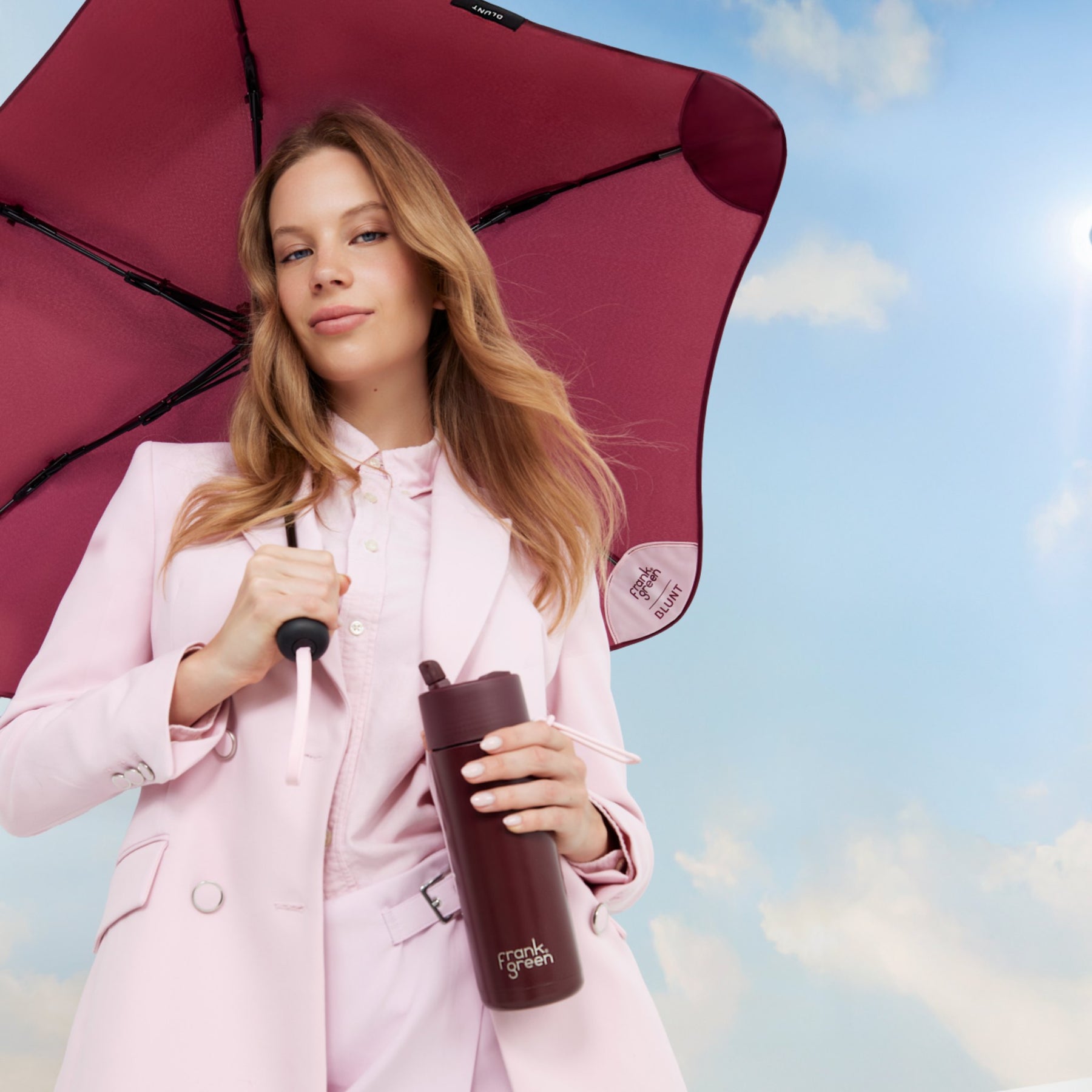 The Metro x Frank Green Plum & Petal collaboration brings together two brands united by a passion for thoughtful design and sustainability, celebrating the beauty of everyday products crafted to last. This limited edition set features a Blunt Metro umbrella in a rich burgundy plum tone with soft petal pink accents, paired with a Frank Green 20oz / 595mL ceramic reusable bottle in a coordinating colourway. Blunt Metro umbrella is your go to companion for unpredictable weather, fitting effortlessly into handbags, totes, or backpacks while the Frank Green 20oz / 595mL ceramic reusable bottle is designed for life on the move, featuring a ceramic lined interior for pure taste, temperature retention for hours, and a durable stainless steel body with a dishwasher safe lid. Perfect for daily use or as a stylish, conscious gift, both pieces are built with intention, designed to be loved for years, and mark the first ever collaboration between Blunt and Frank Green in a set that blends practicality, style, and mindful living.