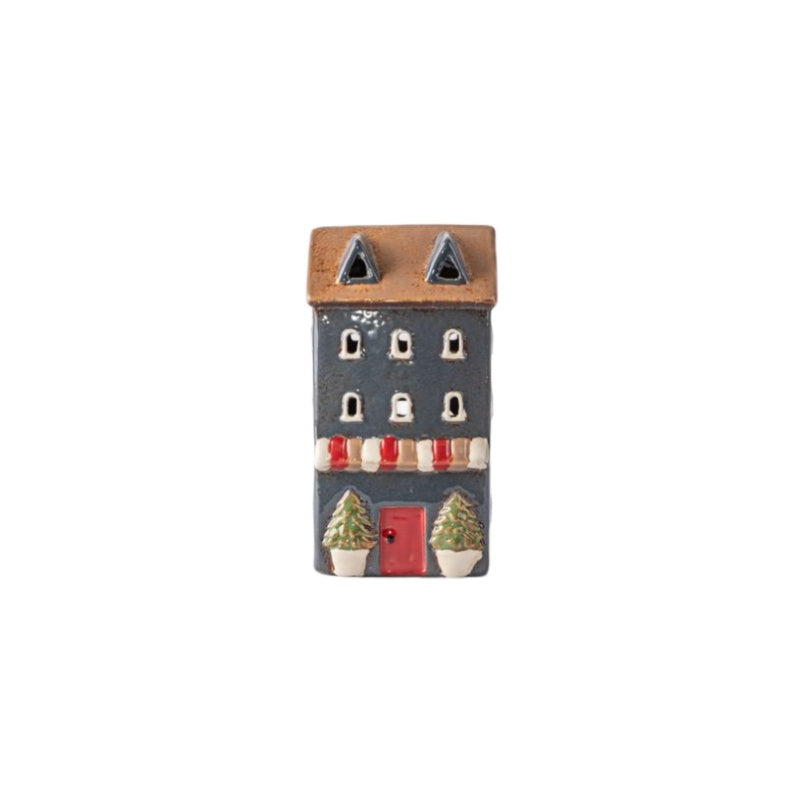 Alsace Tea Light Shop Navy brings festive warmth to your home. Each hand painted ceramic house features intricate details, perfect as a collectible on its own or paired to create a magical village.