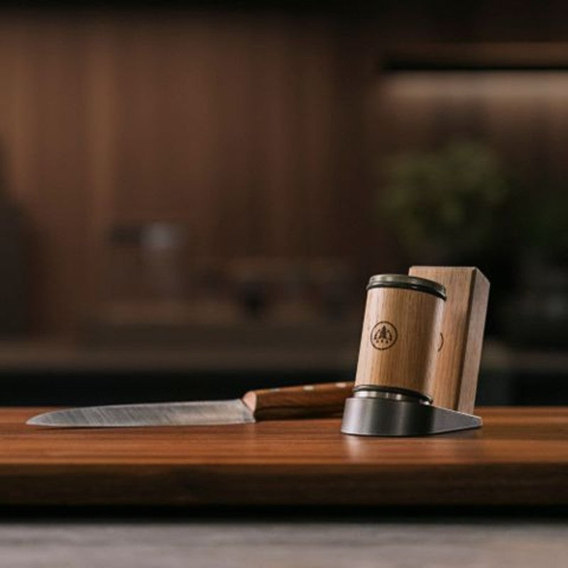 Versatile and expertly crafted, the HORL 3 Oak knife sharpener is designed to deliver everything from keen everyday sharpness to a flawless mirror finish. Expertly made in Germany from solid oak, it pairs timeless craftsmanship with precision engineering that's built to last a lifetime. Interchangeable diamond and ceramic discs work seamlessly with fixed 15° and 20° grinding angles, ensuring consistent, accurate sharpening every time. Choose 15° for a fine, cutting edge ideal for Japanese style knives, or 20° for a stable cutting edge suited to Western blades. Simple to use, attach a knife, blade side up, to the magnetic angle support. Roll sharpener along each side of the blade with the diamond disk to shape and sharpen, then finish with the ceramic disc to polish and remove burrs. With minimal effort, you achieve professional grade sharpness and beautifully refined performance.