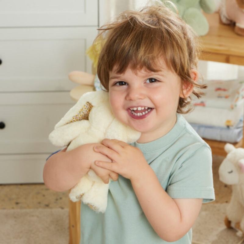 Jiggle & Giggle Floral Lemon Bunny Rattle combines soft plush textures with a gentle sound, making it ideal for newborn gifting and early sensory play. Featuring cheerful lemon-yellow fur and delicate floral accents on its ears and feet, this mini bunny provides soft sensory stimulation and makes an adorable, gift-ready keepsake.