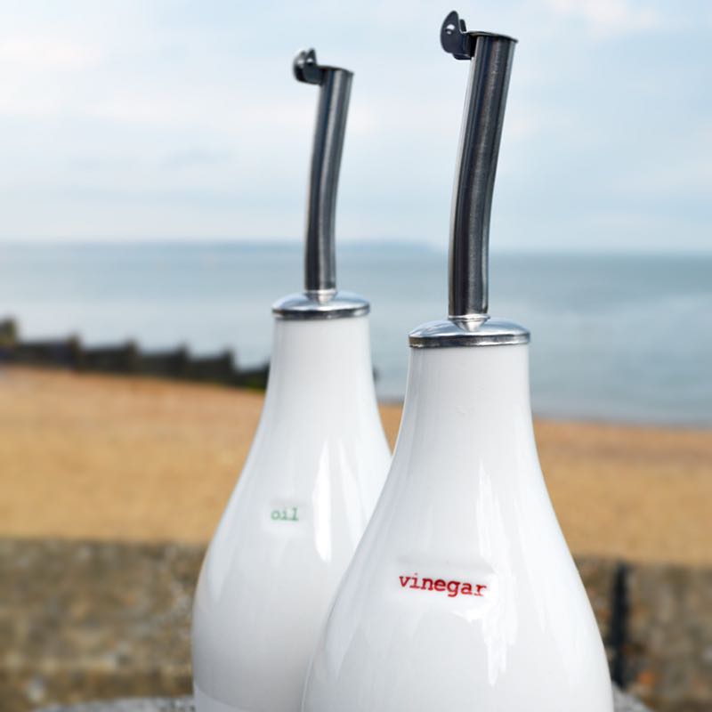 • Hand-stamped ‘oil’ and ‘vinegar’ text in Keith Brymer Jones’ iconic typewriter font