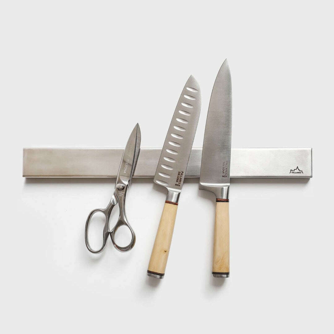 Upgrade your kitchen with the Pallarès Stainless Steel magnetic knife rack, a remarkable addition that keeps all your cutting tools easily accessible, providing a well-organised and efficient knife storage solution.