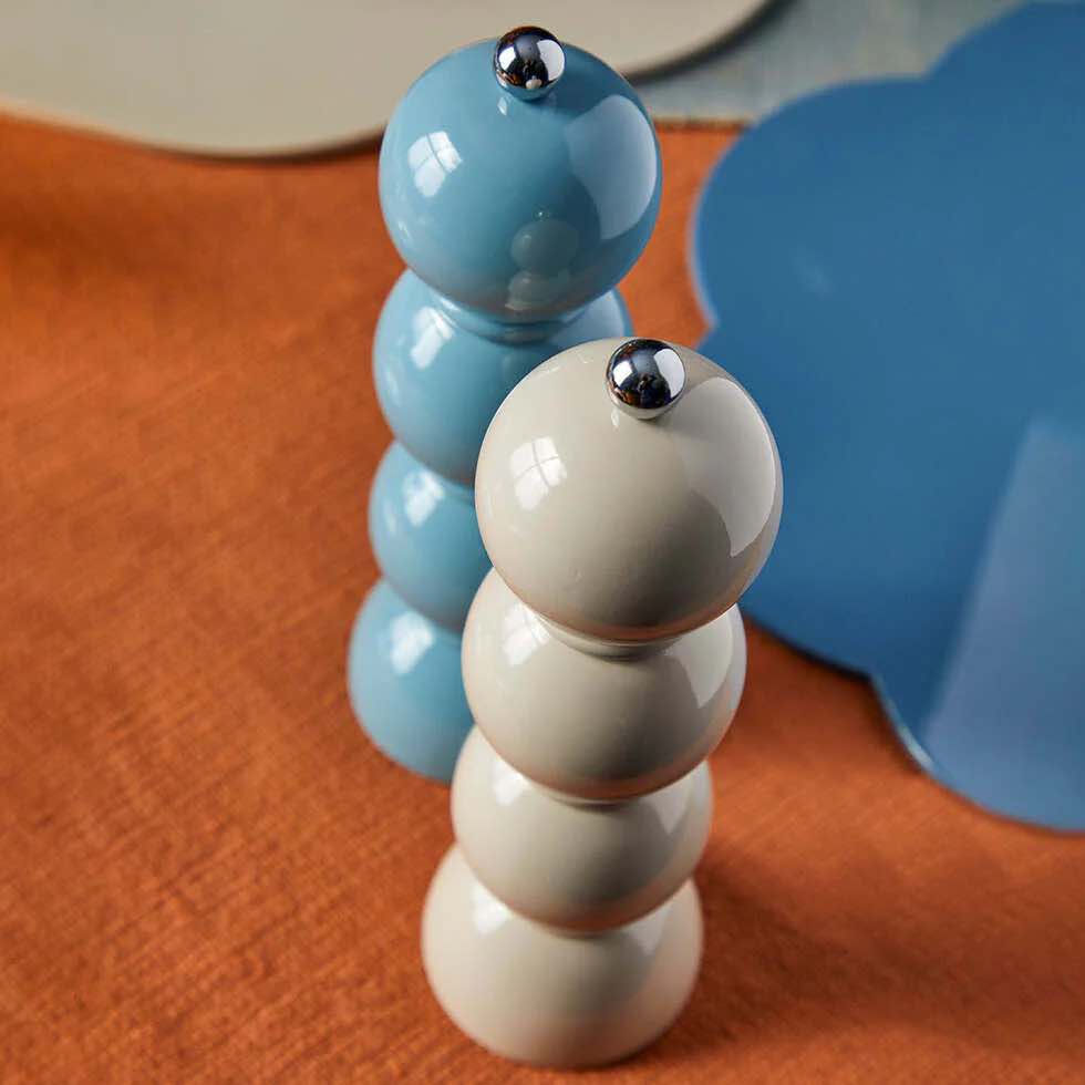 This Chambray Bobbin Grinder brings a vibrant touch to any table. Featuring the signature bobbin shape and interchangeable S and P stainless steel screw knobs, it can be used as either a salt or pepper grinder. Expertly crafted from sustainably sourced rubberwood with eight hand-polished layers of high-gloss lacquer, it combines durability, style, and functionality, perfect for everyday use or gifting.