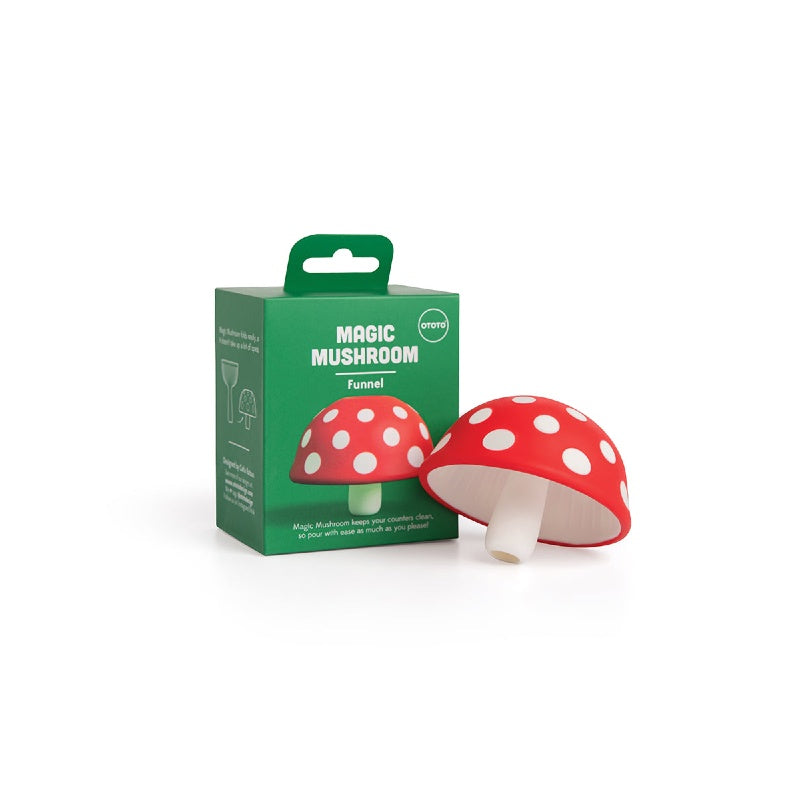 Funnel Fungilicious makes pouring liquids effortless and mess free. Made from 100% food safe, BPA free silicone, this collapsible, fungi shaped funnel turns every transfer into a playful kitchen moment. Simply insert the stem into the bottle, pull up the red section to open, pour with ease, then push it down for storage. Dishwasher or handwash safe, Funnel Fungilicious keeps your counters tidy while adding a touch of enchantment to your cooking routine.
