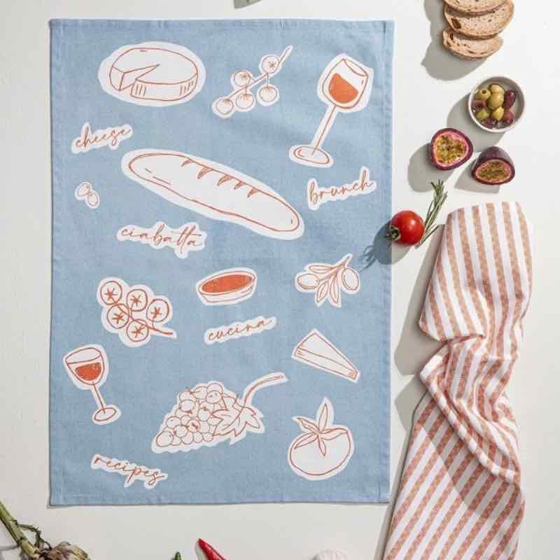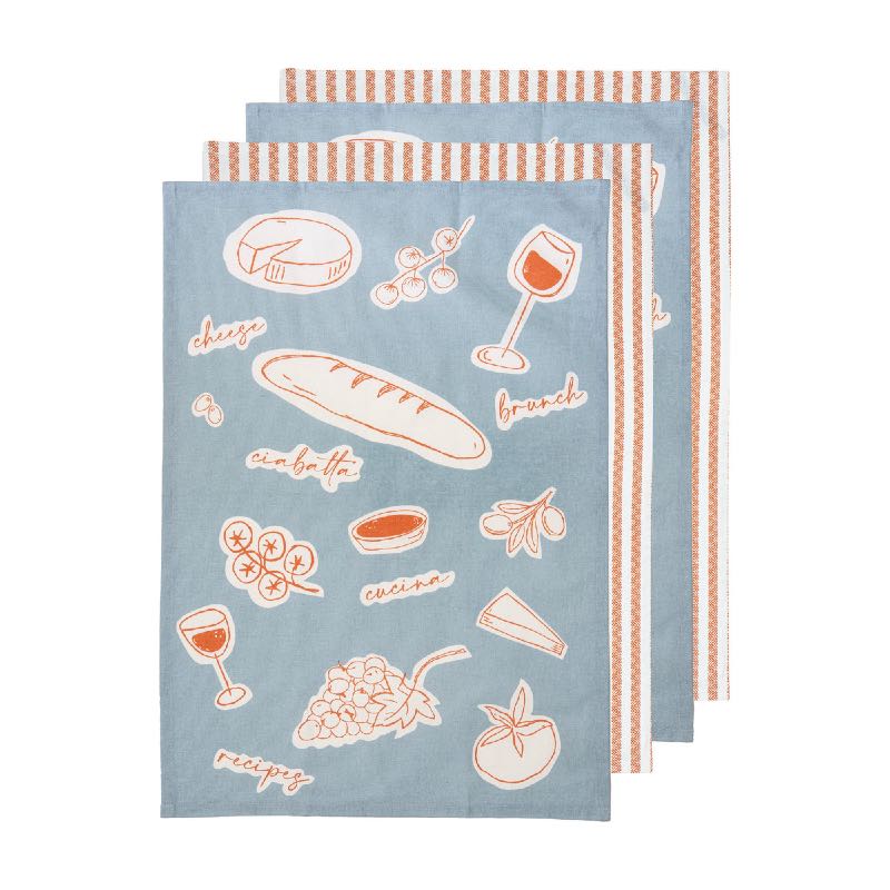 Kitchen Towel A Long Lunch Pale Blue 4 Pack
