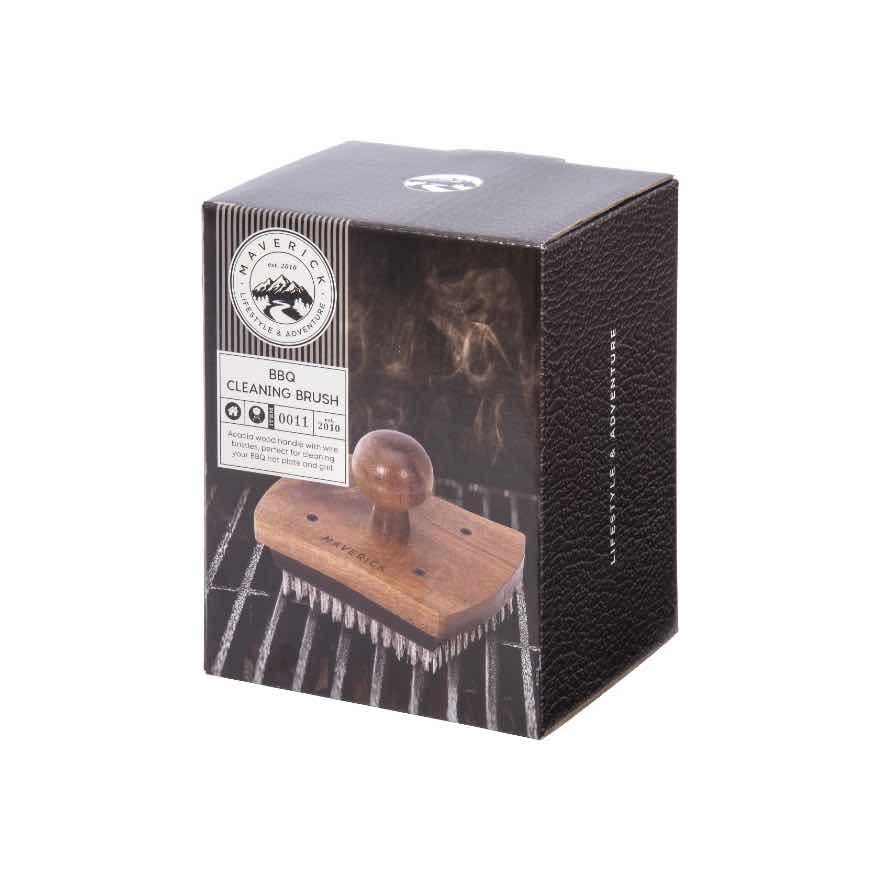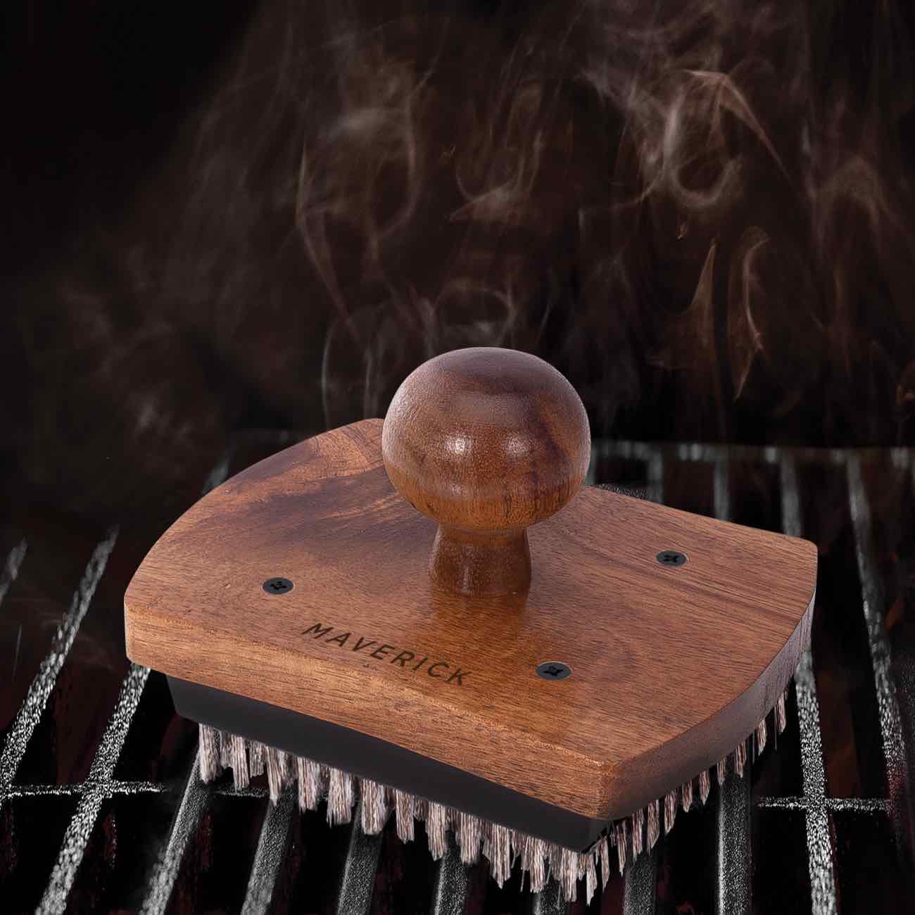 Crafted from durable acacia wood with sturdy steel bristles, this compact grill brush features an ergonomic handle for a comfortable, secure grip. Ideal for everyday barbecue cleaning, it effectively removes residue while fitting neatly in hand.