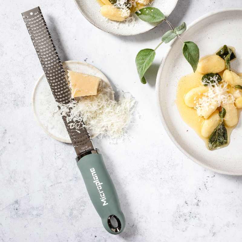 Updated handles for a classic zester. This version of the classic Microplane zester/Cheese Grater has a premium soft-touch handle and non-scratch end tabs. Used by celebrity chefs, restaurants, and home cooks, this tool has the original blade that created the entire range of zesting tools on the market today.
