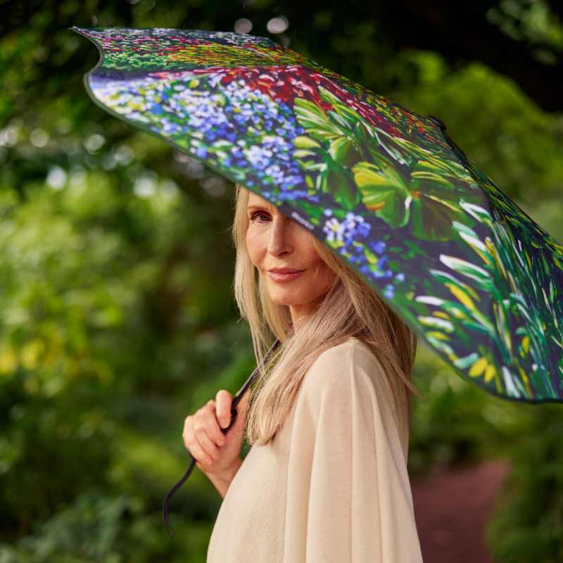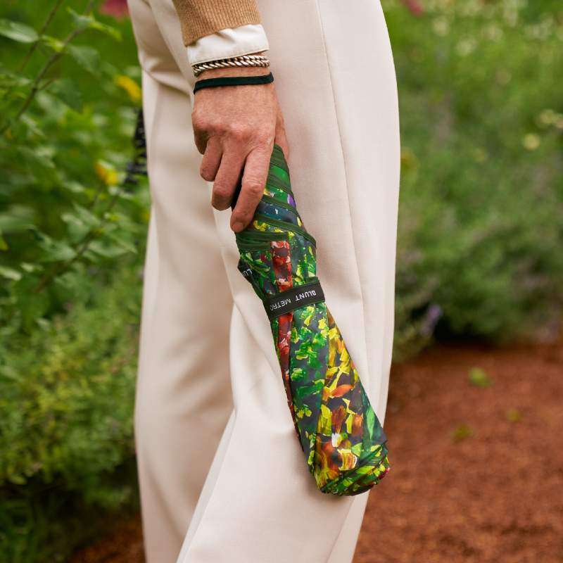 Crafted in collaboration with internationally acclaimed painter Karl Maughan, this limited edition design brings his iconic, perpetually blooming landscapes to life through intricate layering and radiant detail. The Metro Umbrella Karl Maughan 2026 features compact and collapsible design is perfect for those who live life in the fast lane and refuse to let the weather hold them back. It's perfect for unpredictable days when you're not sure about the weather ahead. It easily fits into your handbag, tote, or backpack, ensuring you're prepared for any sudden downpour. With an auto open button, the canopy instantly provides cover at your fingertips. The umbrella's unique 360° spinning technology allows it to handle knocks gracefully when navigating narrow spaces. Once you're done using it, collapse the canopy and slip it back into its carry sleeve. Sized perfectly for one person, it provides you with reliable protection and peace of mind. Trust this umbrella to be your trusted sidekick on your adventures.