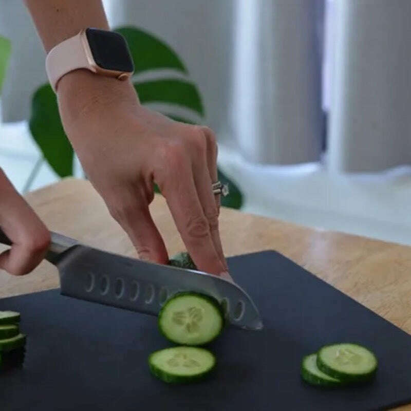 Made from layers of paper, compacted tightly to offer the same feel & cut as a wooden chopping board. Unlike some chopping boards, knives will not dull when used.